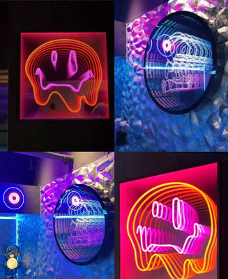 Large Image :  Stainless Steel 3D Fan Hologram Abyss Layer Mirror Letters Mirror Infinity Publicidad